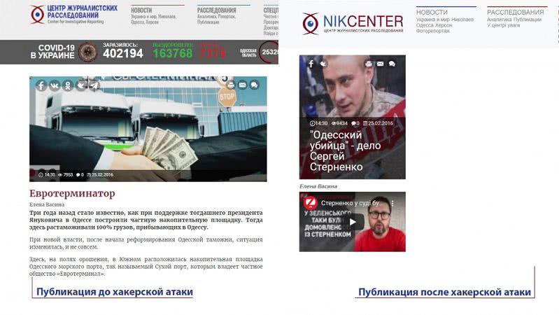 Сайт Центра журналистских расследований атаковали неизвестные и изменили содержание материалов о мэре Одессы Геннадие Труханове, одессите Александре Ангерте, которого СМИ называют авторитетом, и связанной с ними фирме “Евротерминал”.Вмешательству в работу сайта предшествовало обращение представителей ООО “Евротерминала” с требованиями удалить расследование, в котором рассказывалось, как данная компания, нарушая законодательство, брала деньги за въезд грузового транспорта в Одесский порт.